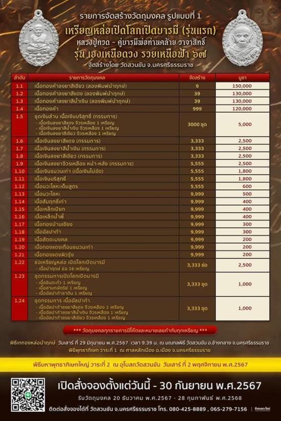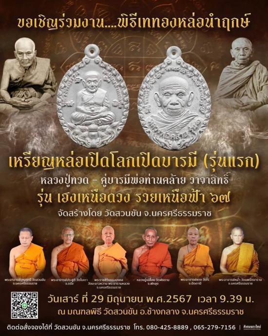 เหรียญหล่อเปิดโลกเปิดบารมี(รุ่นแรก)หลวงปู่ทวด-พ่อท่านคล้าย รุ่นเฮงเหนือดวง รวยเหนือฟ้า67 วัดสวนขัน จ.นครศรีธรรมราช เนื้ออัลบาก้าราคาจององค์ละ300บาท ชุด5องค์ ประกันแท้ |