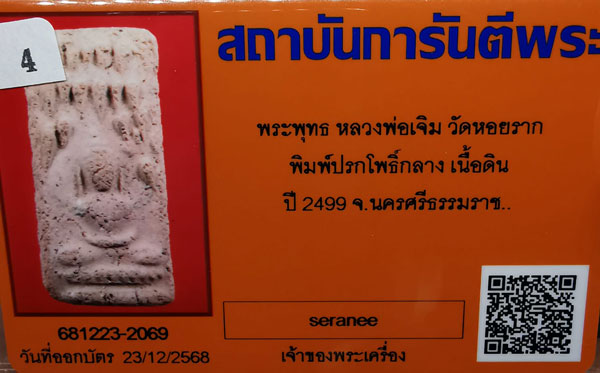 พระพุทธ หลวงพ่อเจิม วัดหอยราก พิมพ์ปรกโพธิ์กลาง เนื้อดิน ปี2499 จ.นครศรีธรรมราช + บัตรG-pra สภาพเดิมค่ะ |
