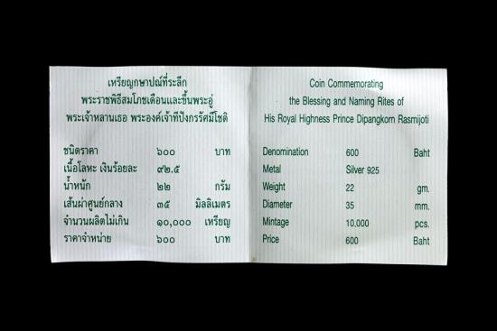เหรียญเงิน 600 บาท พระองค์เจ้าทีปังกรรัศมีโชติ