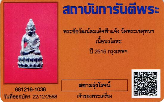 พระชัยวัฒน์สมเด็จฟ้าแจ้ง เนื้อนวะ ปี2516 พร้อมบัตรรับรองG-PRA |