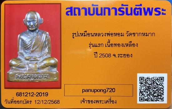 รูปเหมือนปั๊มรุ่นแรก ปี 2508 หลวงพ่อหอม วัดชากหมาก จ.ระยอง