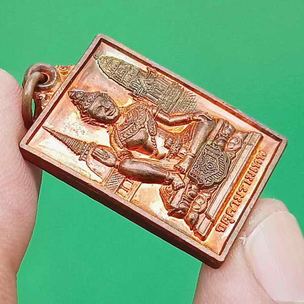 #2 ผิวสวยเดิมๆ เหรียญแสตมป์องค์จตุคามรามเทพ ทวิภพสองแผ่นดิน พ่อให้ลูกรวย วัดพุทไธศวรรย์ เนื้อทองแดง ปี 2549 เนื้อทองแดง จำนวนสร้าง 30,000 เหรียญ ตอกโค๊ด พระปรางค์ ด้านหลังเหรียญ ใต้แขนซ้ายราหู