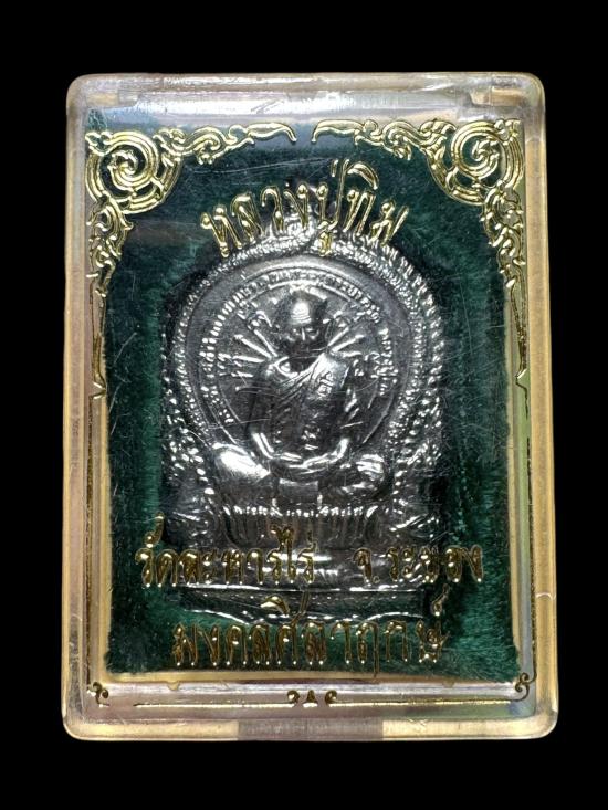 เหรียญนั่งพานหลวงปู่ทิม วัดละหารไร่ รุ่นมงคลศิลาฤกษ์ เนื้อกะไหล่เงิน ปี2537 พร้อมกล่อง
