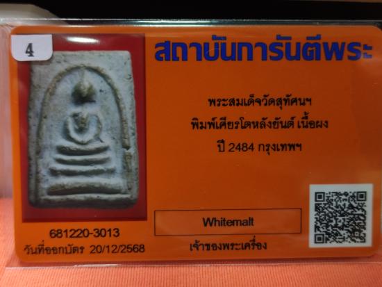 พระสมเด็จพิมพ์ไกเซอร์ เศียรโต หลังยันต์ หลวงพ่อสุพจน์ วัดสุทัศน์ ปี 2484 พร้อมบัตรรับรองครับ