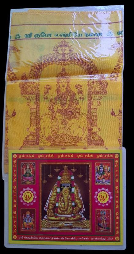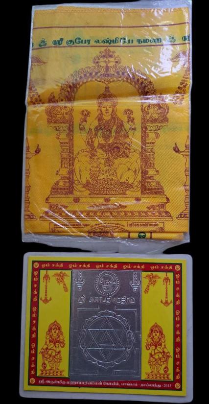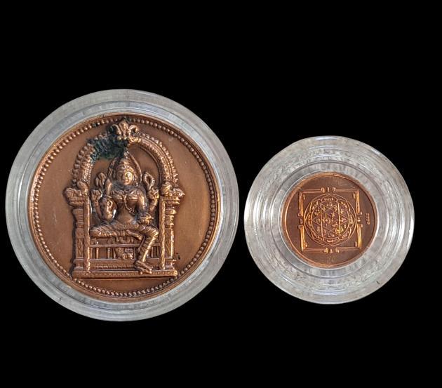 เหรียญพระพิฆเนศ หลังพระแม่อุมาเทวี วัดพระศรีมหาอุมาเทวี (วัดแขกสีลม) พิมพ์ใหญ่ เนื้อทองแดงซาติน ขนาด 3 ซม เหรียญเล็ก เนื้อทองแดงปัดเงา ขนาด 1.5 ซม สวยงามมาก บรรจุตลับเดิม พร้อมแผ่นเงินบูชาและผ้ายันต์แม่ลักษมีเทวีแห่งโชคลาภ จากอินเดีย 1 ผืน |