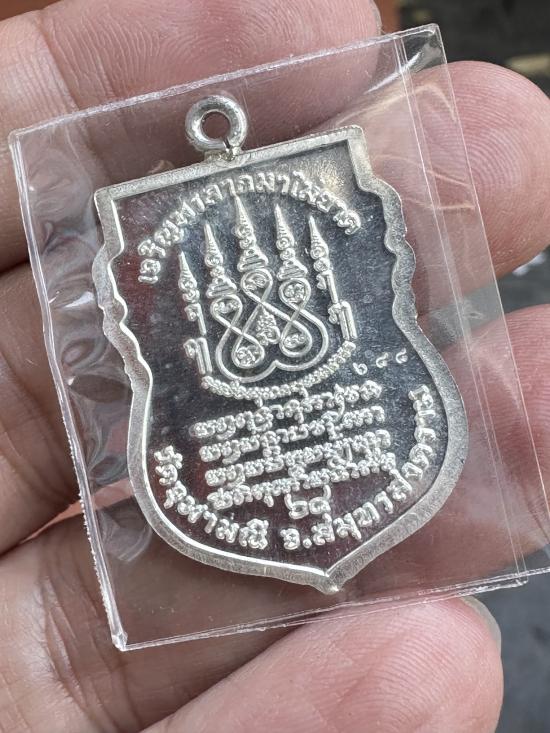 เหรียญเสมาหน้าแซยิดหูเชื่อมโบราณ หลวงพ่ออิฎฐ์ วัดจุฬามณี จ.ส มุทรสงคราม พ.ศ.2565 เนื้อเงิน ตอกโค๊ต ตอกเลข ๖๘๘ กล่องเดิม