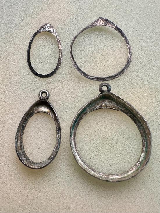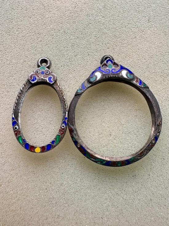 กรอบเงินแท้ลงยา 2ใบ ใส่เหรียญเล็กหน้าใหญ่+เหรียญโภคทรัพย์ หลวงปู่หมุนได้ค่ะ (ไม่มีห่วง) น้ำหนัก รวม 10.94 ค่ะ