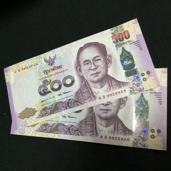 2 ฉบับ แบงค์ 500 รุนสุดท้าย รัชกาลที่ 9 หมวด 9S ไม่ผ่านใช้ หมายเลข 9S-9926985-6