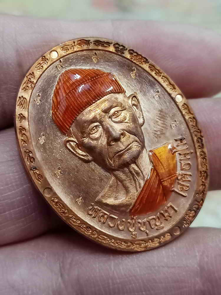 วัดใจ 100 เหรียญรุ่นแรก พิมพ์ใส่หมวก หลวงปู่บุญมา สำนักสงฆ์เขาแก้วทอง จ.ปราจีนบุรี 2567 ทองแดงผิวไฟ ตอก 9 รอบ ลงยา หมายเลข 92 สร้าง 118 กล่องเดิม |