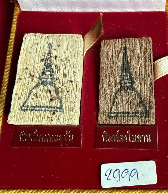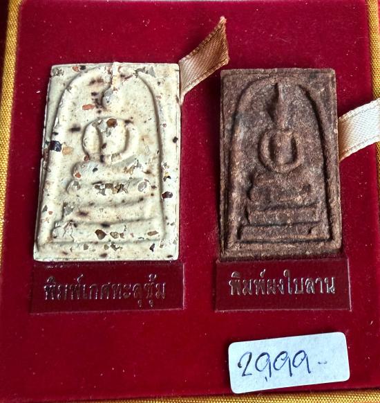 รายละเอียด วัดใจไปเลย พระสมเด็จบางขุนพรหมย้อนยุค ปี 2547 พิมพ์เกศทะลุซุ้ม + พิมพ์ผงใบลาน