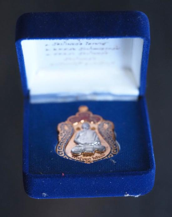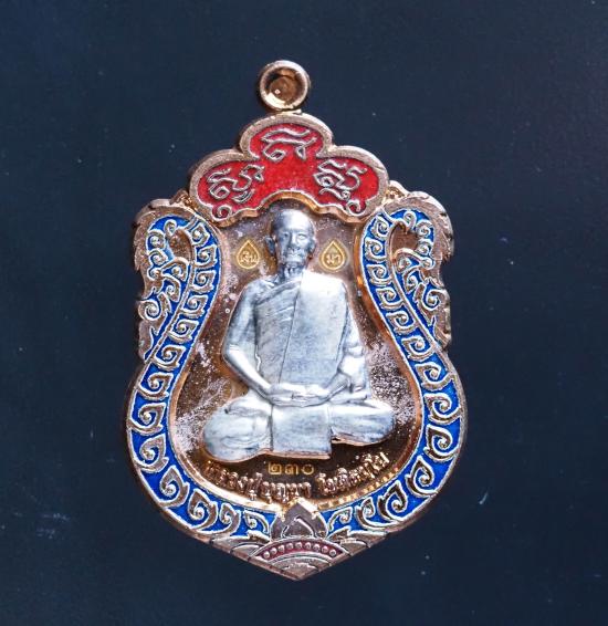 เหรียญเสมา ฟ้าพระกาฬรวยล้นฟ้า เนื้อนวโลหะลงยาหน้ากากเงิน โค๊ด เลข พ.ศ.2556 สภาพสวย หลวงปู่บุญมา วัดบ้านแก่ง จ.ปราจีนบุรี สวยกล่องเดิม เคาะแรก