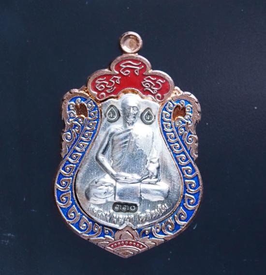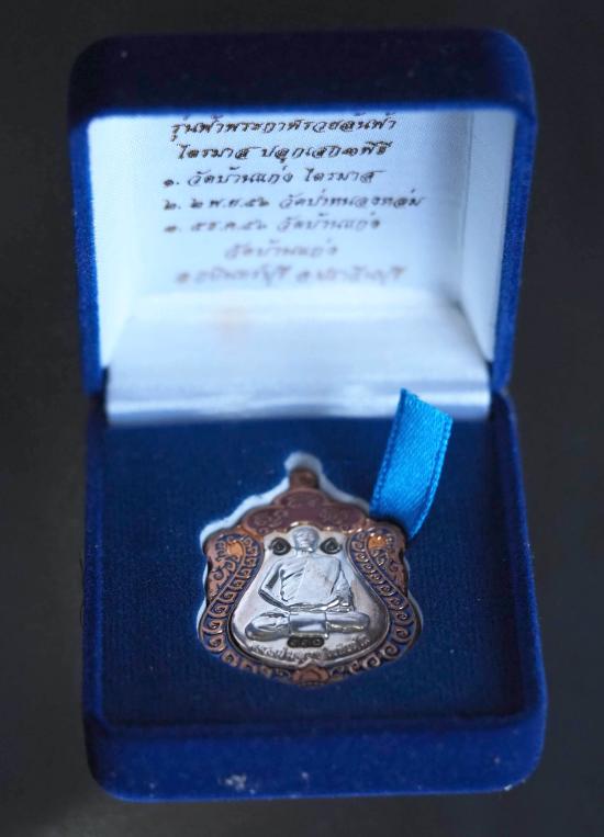 เหรียญเสมา ฟ้าพระกาฬรวยล้นฟ้า เนื้อนวโลหะลงยาหน้าน้ำเต้าเงิน โค๊ด เลข พ.ศ.2556 สภาพสวย หลวงปู่บุญมา วัดบ้านแก่ง จ.ปราจีนบุรี สวยกล่องเดิม เคาะแรก