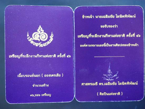 เหรียญที่ระลึกงานกีฬาแห่งชาติ ครั้งที่ ๔๖ หรือ เจียงฮายเกมส์ เนื้อบรอนซ์นอก (ออสเตรเลีย) ตอกโค๊ด เลเซอร์เลข สวยเดิมกล่องเดิม อุปกรณ์ครบๆ