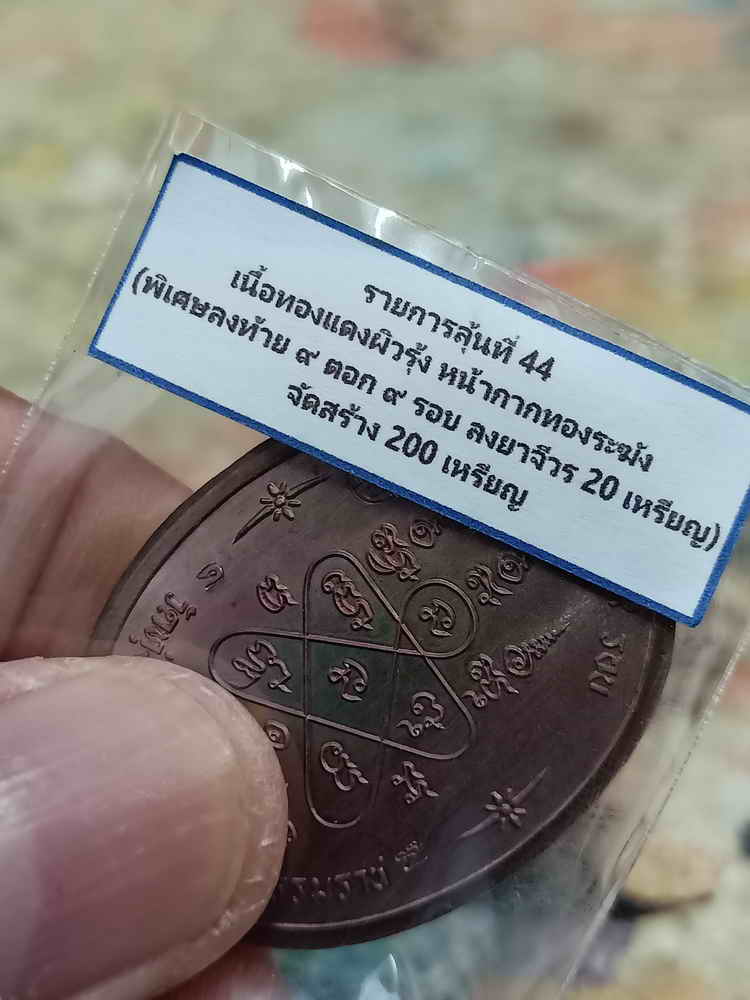 วัดใจ 100 เหรียญเจริญพร ตรงวาระ 9 รอบ หลวงปู่อิ่ม วัดทุ่งนาใหม่ จ.นครศรีธรรมราช 2568 ทองแดง หน้ากากทองระฆัง หมายเลข 7 กล่องเดิม |