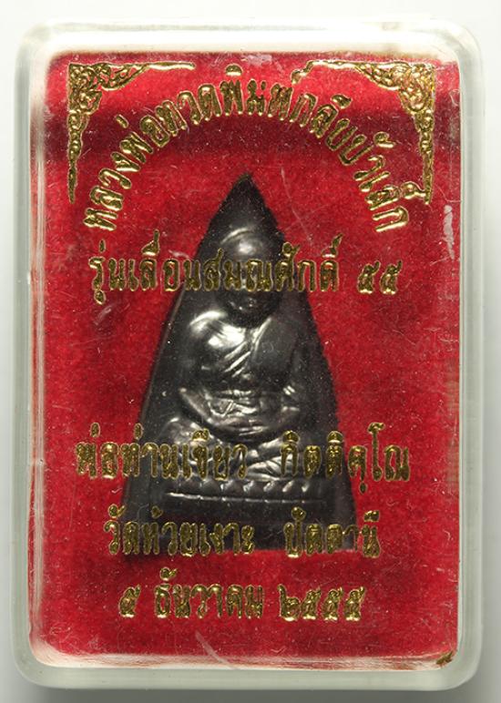 พระกลีบบัว หน้ารุน รุ่นแรก พ่อท่านเขียว วัดห้วยเงาะ รุ่น เลื่อน 55 เนื้อ ทองแดงรมดำ ปี 2555 หายากหมดจากวัดไปนานแล้วคนไปวัดหากันมากก็ไม่มีแล้ว สวยๆ พร้อมกล่องเดิม |