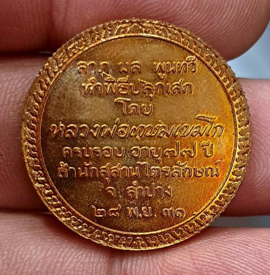 เหรียญลายเซ็นต์ สวัสดี ปี 2531 เนื้อทองแดงผิวไฟ เหรียญนี้มีดีที่มีลายเซ็นต์หลวงพ่อเกษม เขมโก อีกรุ่นหนึ่ง ( มีลายเซ็นต์ก็เสมือนเป็นตัวแทนของหลวงพ่อเกษม เขมโก ) |