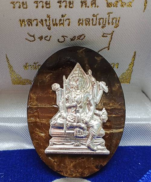พระพรหมมหาเศรษฐี รุ่นแรก หน้ากากเงิน ของ หลวงปู่แผ้ว ไสหลวง พัทลุง หน้ากากเงินแท้ กะลาตาเดียว พระพรหมมหาเศรษฐี รุ่น 1 รูปไข่