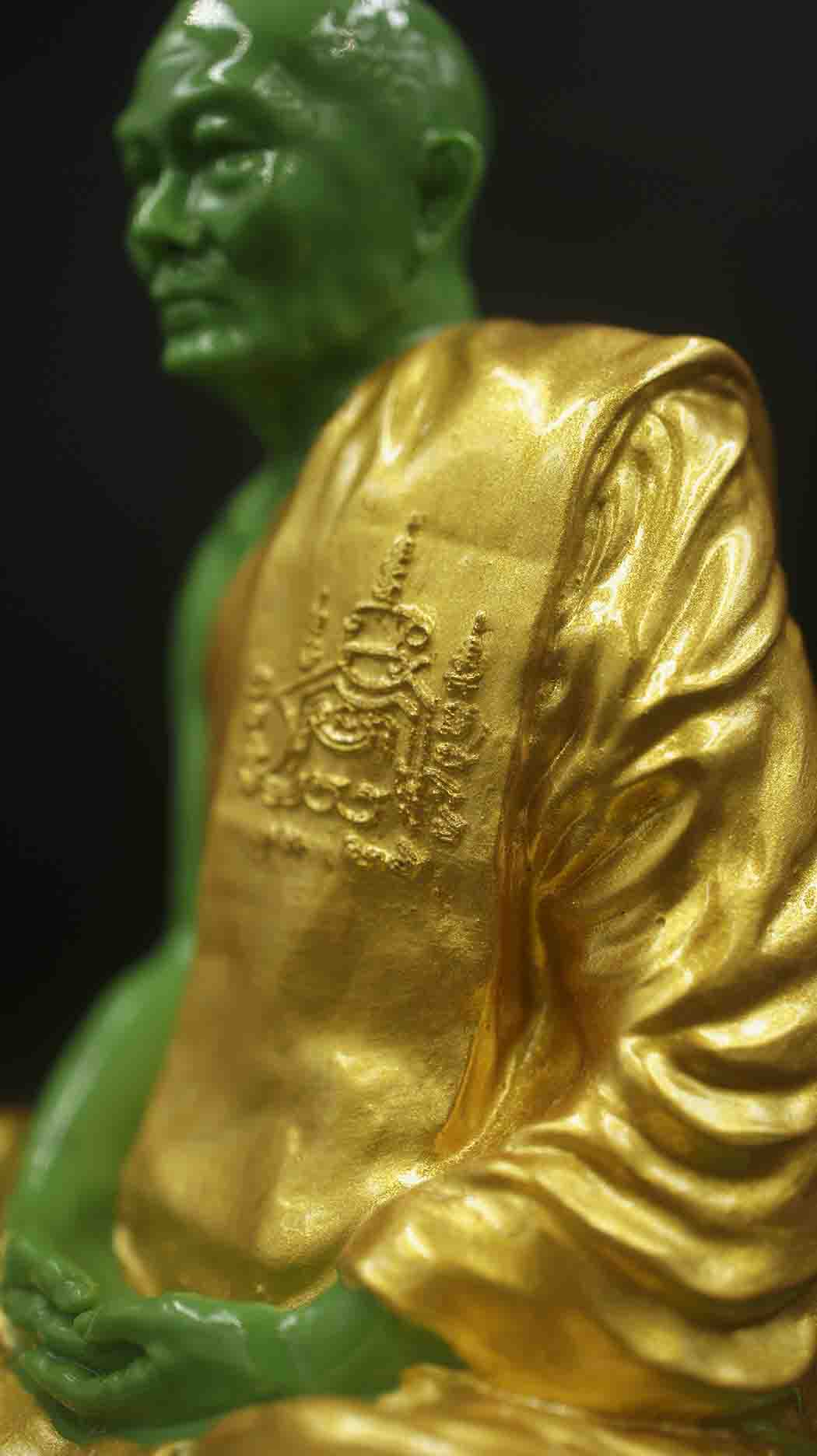 พระบูชา รูปหล่อ หลวงพ่อสาคร ( ย้อนยุค ) เนื้อเรซิ่นเขียว จีวรทอง ปี 2566 ขนาดหน้าตัก 3 นิ้ว สร้าง 1499 องค์ หมายเลข 3 หลัก ** สวย **799** ( หลวงพี่ภุชงค์ ศฺิษย์หลวงพ่อสาคร ปลุกเสก วัดหนองกรับ ) ขนาดความสูง 4.8 นิ้ว กว้างจากฐาน 4 นิ้ว ใต้ฐาน ฝังหลอดมวลสาร แผ่นโค๊ตเงิน ตอกศาลา* |