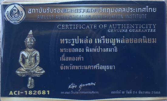 Rare items หายากมากๆ ครับ พระยอดธงสมัยอยุธยา เนื้อทองคำนพเก้า หรือ ทองนพคุณ หนัก 16.05 กรัม + บัตร ของ อาจารย์ป๋อง สุพรรณ ครับ |