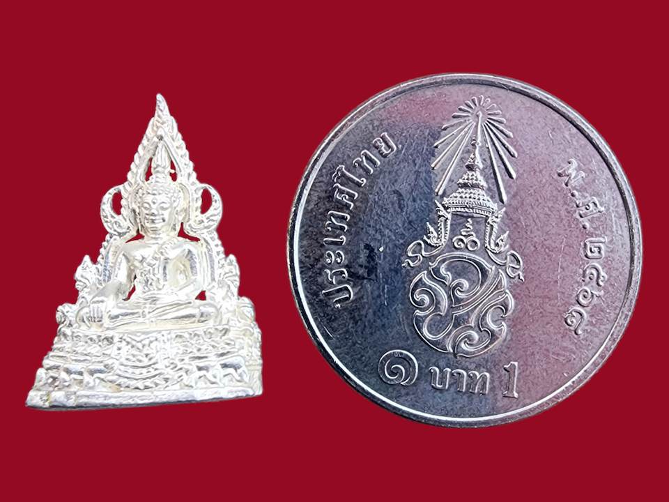 พระรูปหล่อพระพุทธชินราชเนื้อเงินประมาณปี 2533 ถึง 2536 ใต้ฐานตอกโค๊ตเนื้อเงินเปอร์เซ็นต์สูงสวยเดิมรับประกันตามกฎน้ำหนัก 2.5 กรัม |