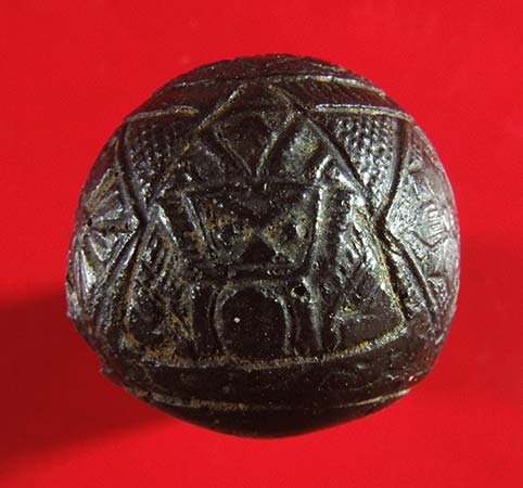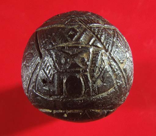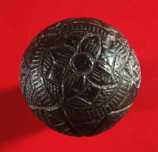 ลูกอมราหูอมจันทร์ บรรจุกริ่งด้านใน เขย่ามีเสียง ขนาด 2 ซ.ม. ไม่ทราบที่ ไม่ทราบวัสดุแต่ลักษณะคล้ายๆกะลาครับ