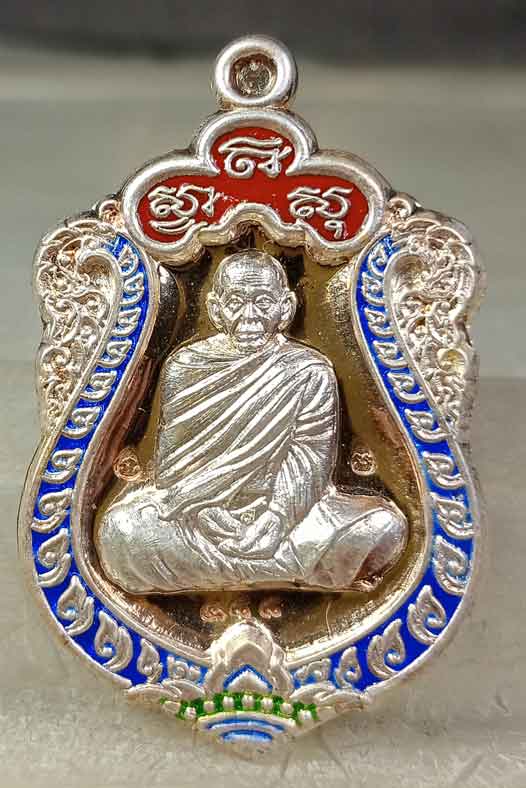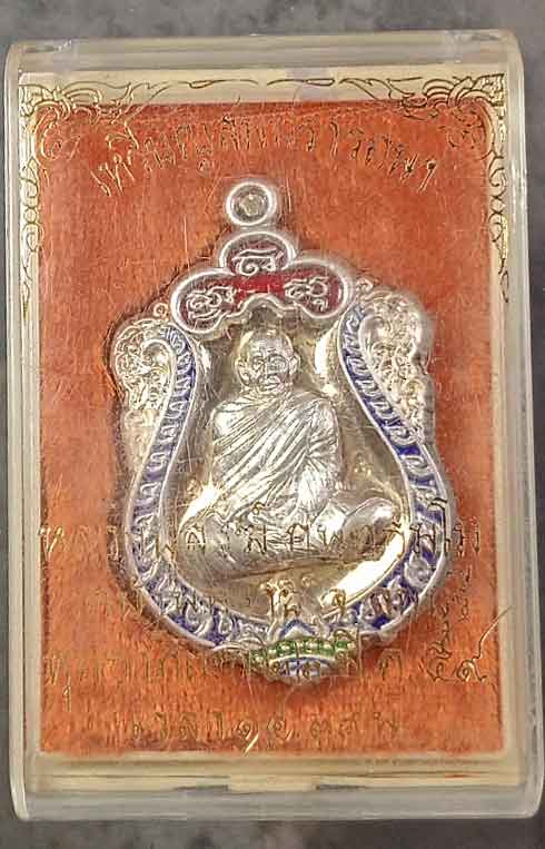 เหรียญสมปรารถนา หลวงปู่สงฆ์ วัดบ้านทราย ลพบุรี อายุ 104 ปี เนื้อนวะหน้ากากเงินลงยา เลข 488 กล่องเดิม