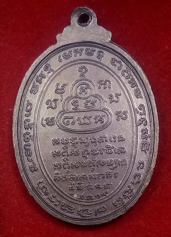 ด้านหลังของเหรียญ ตรงกลางเป็นยันต์น้ำเต้า ซึ่งเป็นอักขระยันต์สัญลักษณ์ของเจ้าคุณนรฯ วัดเทพศิรินทร์ ด้านล่างเป็นอักขระคาถาของหลวงพ่อคง วัดบางกะพ้อม จ.สมุทรสงคราม ซึ่งปรากฏอยู่บนเหรียญรุ่นแรกของท่าน สำหรับอักขระคาถารอบเหรียญ เป็นของหลวงพ่อแดง วัดเขาบันไดอิฐ จ.เพชรบุรี ซึ่งปรากฏอยู่ด้านหลังเหรียญรุ่นแรกของท่านเช่นเดียวกัน