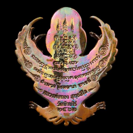 พญาครุฑ มหาอำนาจ โชคลาภ บารมี หลวงพ่อทอง สุทธสีโล วัดบ้านไร่ ๒๕๖๒ เนื้อทองแดงผิวรุ้ง หมายเลข ๖๓๗ พร้อมกล่องเดิม |
