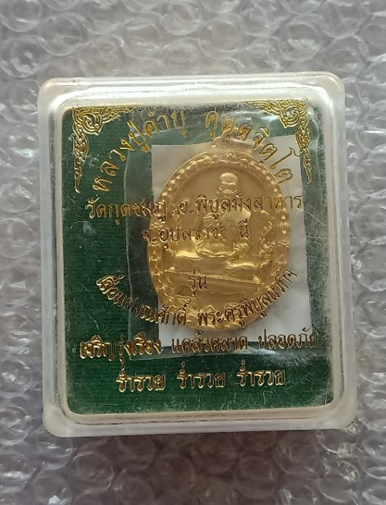 เหรียญฉลุยกองค์ รุ่นเลื่อนสมณศักดิ์ หลวงปู่คำบุ คุตฺตจิตฺโต วัดกุดชมพู จ.อุบลราชธานี เนื้อบอร์นนอกชุบทอง |