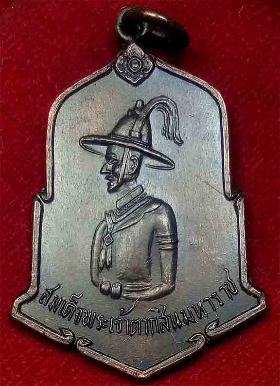 เหรียญพระเจ้าตากสิบมหาราชสมทบทุน สร้างอนุสาวรีย์พระเจ้ากาวิละ เชียงใหม่ ปี 2512 เข้าพิธีปลุกเสกพร้อมกริ่งนเรศวรเมืองงาย พระบาทสมเด็จพระเจ้าอยู่หัวทรงเสด็จมาประกอบพิธีเททอง