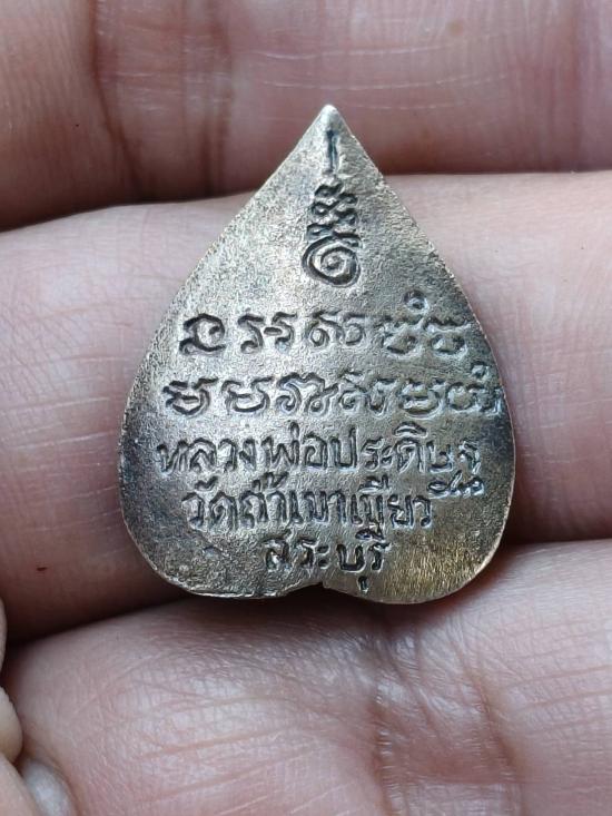 "เคาะเดียว"รูปหล่อใบโพธิ์หลวงพ่อประดิษฐ์ วัดถ้ำเขาเขียว จ.สระบุรี ปี2536 เนื้อเงิน กล่องเดิม |
