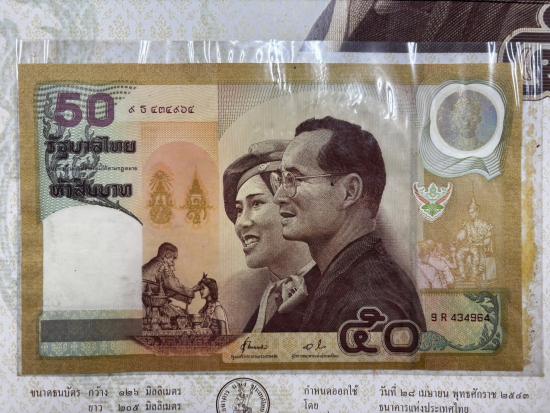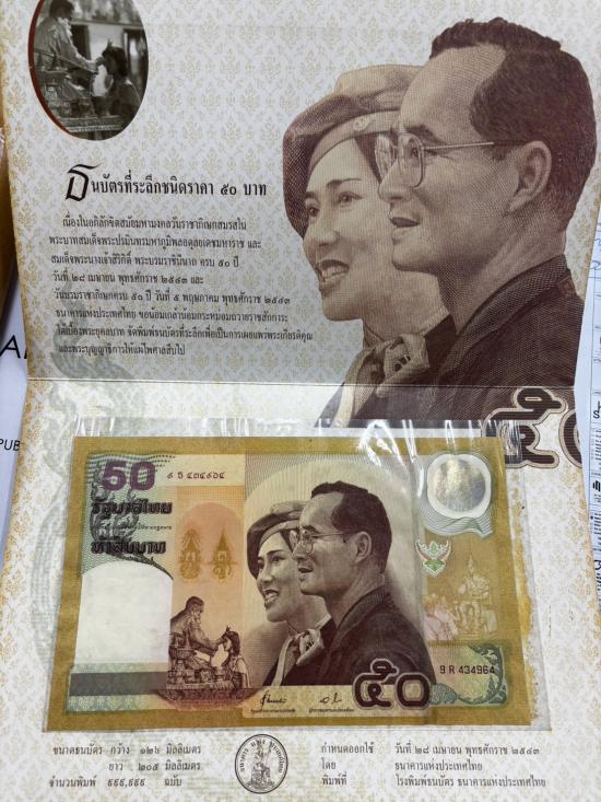 เคาะเดียวแดง!!! ธนบัตร50บาท 2ชุด ในหลวง พระราชินี ที่ระลึกราชาภิเษกสมรสบรมราชาภิเษก ครบ 50ปี แบงค์ผ้าไหมทอง ครบชุด |