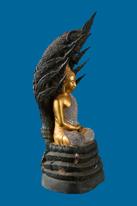 พระบูชา พระนาคปรกพญานาค หน้าตัก 5 นิ้ว สูุง 15 นิ้วศิลปะสวนงาม ไม่ทราบสำนักหรือวัดครับ