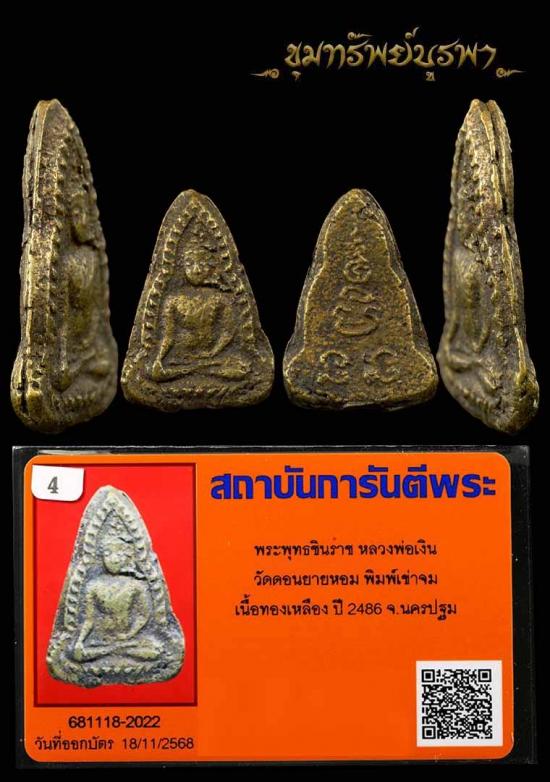 วัดใจ เคาะเดียว เหรียญหล่อชินราช หลวงพ่อเงิน มีหน้าตา วัดดอนยายหอม ปี 2486 พิมพ์เข่าจม