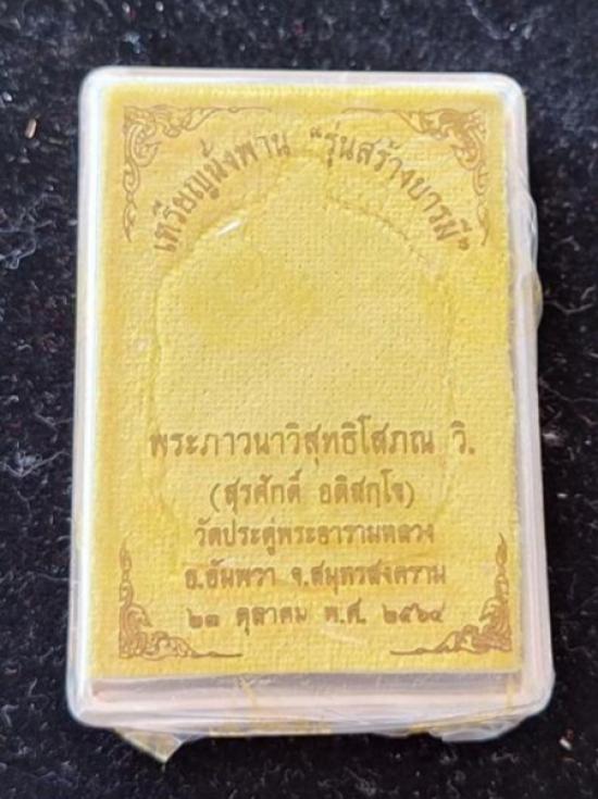 เหรียญนั่งพาน รุ่นสร้างบารมี พระภาวนาวิสุทธิโสภณ(พระมหาสุรศักดิ์) วัดประดู่พระอารามหลวง สมุทรสงคราม ปี 2564 เนื้อนวโลหะพร้อมกล่องเดิม |