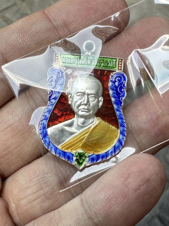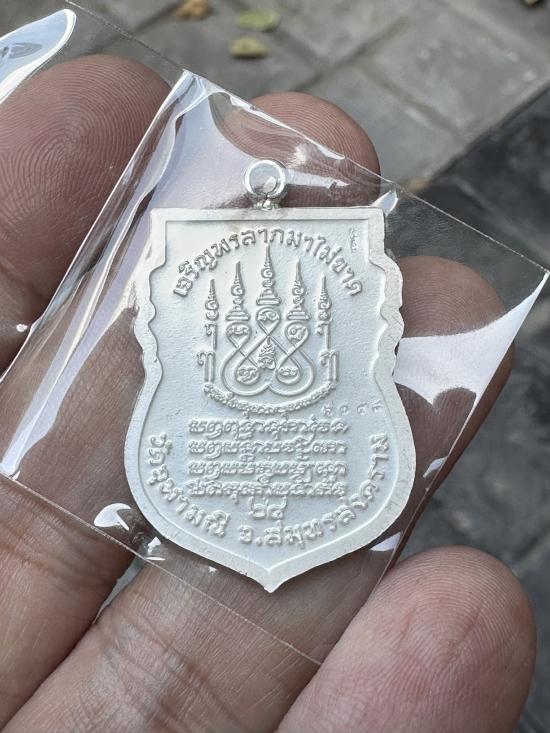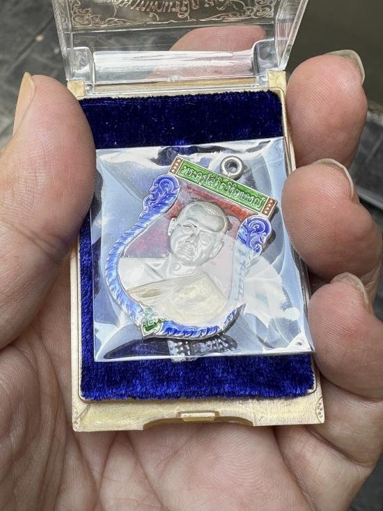 เหรียญเสมาหน้าแซยิดหูเชื่อมโบราณ หลวงพ่ออิฎฐ์ วัดจุฬามณี จ.ส มุทรสงคราม พ.ศ.2565 เนื้อเงินลงยา ตอกโค๊ต ตอกเลข ๖๗๕๘ กล่องเดิม