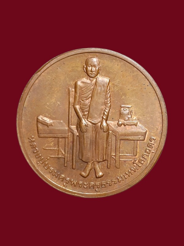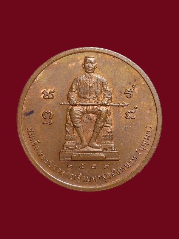 เหรียญหลวงปู่บรมครูพระครูธรรมเทพโลกอุดร หลัง สมเด็จพระบวรราชเจ้ามหาสุรสิงหนาท (บุญมา) ปี 2539 บล็อกกษาปณ์ เนื้อทองแดง |