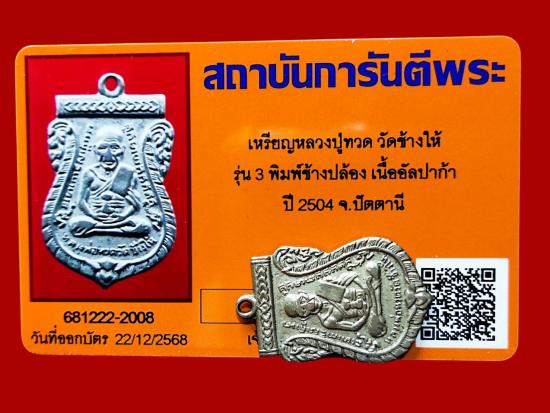...เหรียญหลวงปู่ทวด วัดช้างให้ รุ่น3 พิมพ์ช้างปล้อง(นิยมสุด) เนื้ออัลปาก้า ปี2504 จ.ปัตตานี พร้อมบัตรG-PRA |