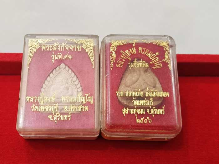 วัดใจ 100 เดียวแดง ++ พระสังกัจจายน์ + พระปิดตา เนื้อผง หลวงปู่หงษ์ วัดเพชรบุรี จ.สุรินทร์ พร้อมกล่อง