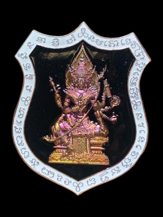 เนื้อทองแดงผิวรุ้ง ลงยาพื้นดำ ขอบขาว no.3338