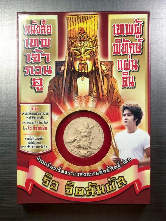 เหรียญเนื้อผงเทพเจ้ากวนอู ปางพิทักษ์แผ่นดิน ที่จัดสร้างขึ้นด้วยมวลสารศักดิ์สิทธิ์ประกอบด้วยผงธูปจากกระถางธูปเทพเจ้ากวนอูจาก 4 แผ่นดินได้แก่ประเทศไทย, ออสเตรเลีย , ไต้หวัน และจีน อัญเชิญโดยริว จิตสัมผัส นอกจากนี้ยังมีดอกไม้มงคล 5 ชนิด สำหรับพิธีพุทธาภิเษกจัดขึ้นในวันที่ 1 ก.ค.55 ณ มูลนิธิรวมใจรังสิต (ไต่ฮงกง) จ.ปทุมธานี รายได้ส่วนหนึ่งนำไปบูรณะศาลไต่ฮงกงรังสิต