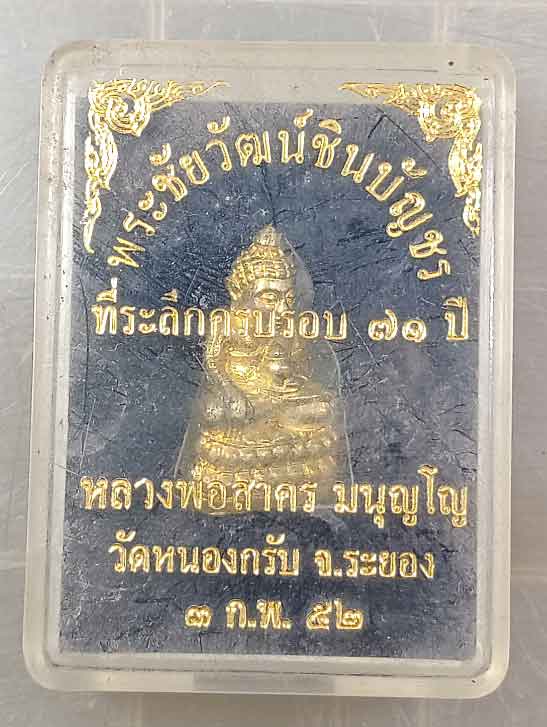 พระชัยวัฒน์ชินบัญชร หลวงพ่อสาคร ปี2552 กล่องเดิม |
