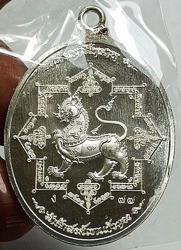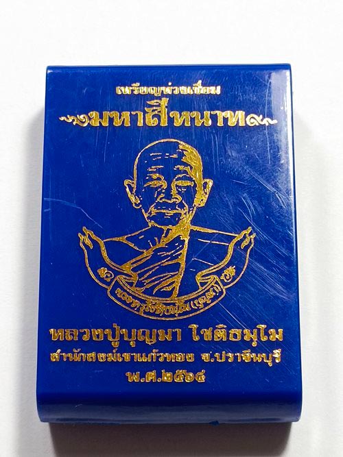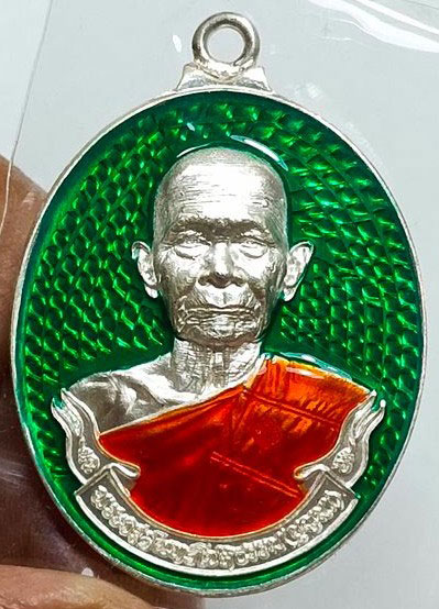 เหรียญห่วงเชื่อม มหาสีหนาท หลวงปู่บุญมา โชติธัมโม สำนักสงฆ์เขาแก้วทอง ปี 2564 เนื้อเงินลงยาสีเขียว หมายเลขเบิ้ล 77 พร้อมกล่องเดิม ๆ จ.ปราจีนบุรี