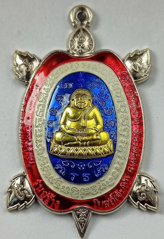 เหรียญพญาเต่าเรือน (จัมโบ้) หลวงปู่แสน วัดบ้านหนองจิก รุ่น สร้างโบสถ์ เนื้อเงินลงยาลายธงชาติ "หน้ากากทองคำ" เบอร์ 62 พร้อมกล่องครับ (เหรียญจริงใหญ่ น้ำหนักเหรียญ 29.11กรัม)
