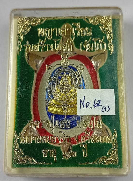 เหรียญพญาเต่าเรือน (จัมโบ้) หลวงปู่แสน วัดบ้านหนองจิก รุ่น สร้างโบสถ์ เนื้อเงินลงยาลายธงชาติ "หน้ากากทองคำ" เบอร์ 62 พร้อมกล่องครับ (เหรียญจริงใหญ่ น้ำหนักเหรียญ 29.11กรัม) |
