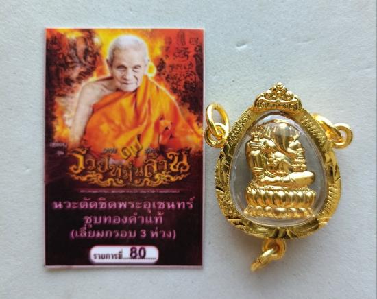 วัดใจเคาะเดียวแดงจ้า พระพิฆเนศตัดชิด หลวงปู่อิ่ม วัดทุ่งนาใหม่ เนื้อนวะชุบทองคำแท้ เลี่ยมกรอบชุบทอง3ห่วง หมายเลข7777 เคาะเดียวแดงจ้า |