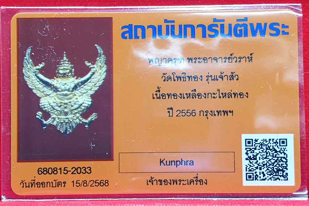 พญาครุฑ พระอาจารย์วราห์ วัดโพธิทอง รุ่นเจ้าสัว พร้อมบัตรรับรอง เคาะเดียวแดง 1,200