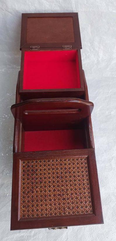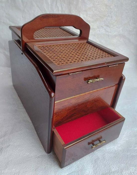 **วัดใจ***กล่องไม้ผสมหวายวินเทจญี่ปุ่น งานฝีมือเก่า มี 5 ช่องเก็บของ งานเก่าน่าสะสม สามารถใส่อุปกรณ์พระเครื่องได้ |