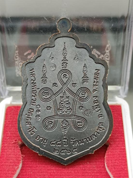 เหรียญเสมา รวยมหาสมปรารถนา หลวงพ่อรวย อคฺคสาโร วัดมาบตาพุด อ.เมือง จ.ระยอง เนื้อทองแดงรมดำหน้ากากเงิน น้ำเต้าเต็มแผ่น พิเศษ (หลังยันต์หลวงปู่หมุน) หมายเลข 318 |