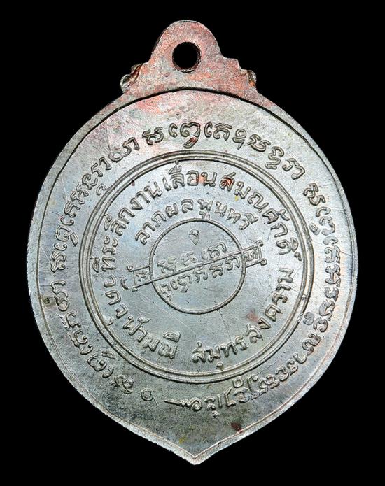 ด้านหลัง: อักขระยันต์ศักดิ์สิทธิ์ พร้อมระบุปีสร้าง พ.ศ. 2517
